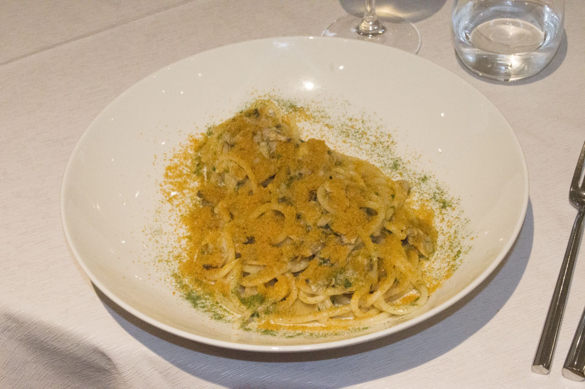 Fresh tonnarello pasta whit pecorino cheese, pepper and mullet roe 1-4-7