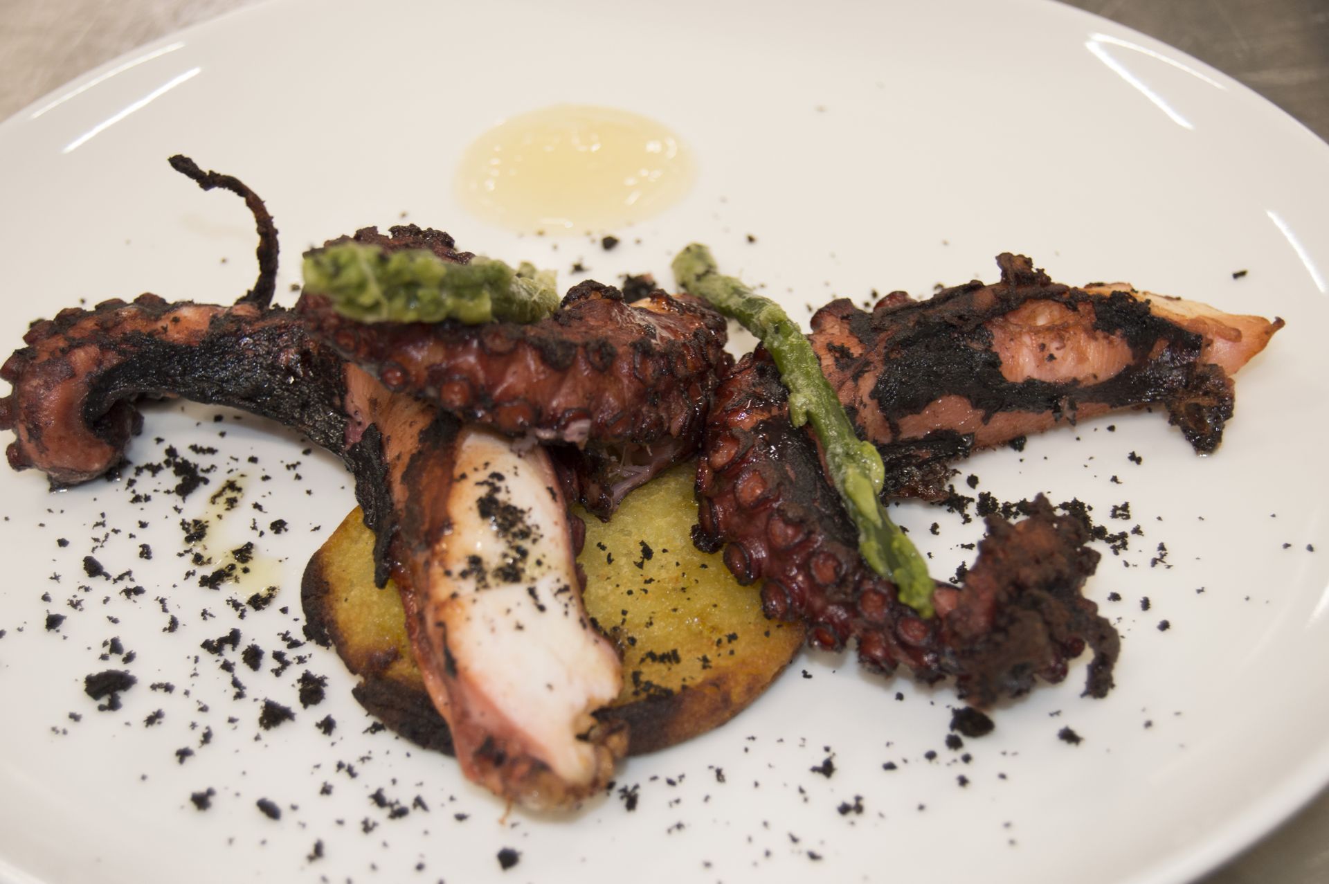 Roasted octopus, potatoes, saffron and green sauce 14*