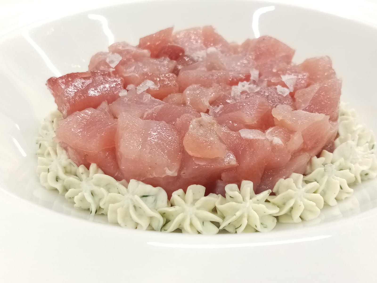 Raw Tuna, lemon cappers powder, stracciatella cheese 4-7#