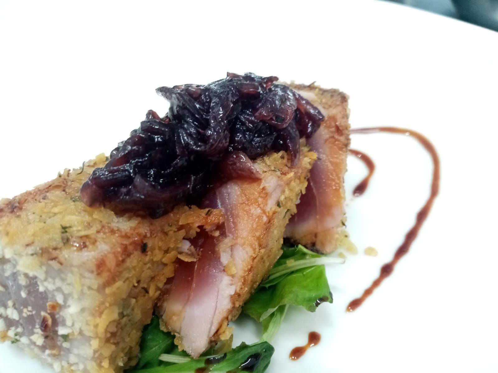Tuna whit carasau bread, agrosweet onion and soia reduction 1-4-6 #